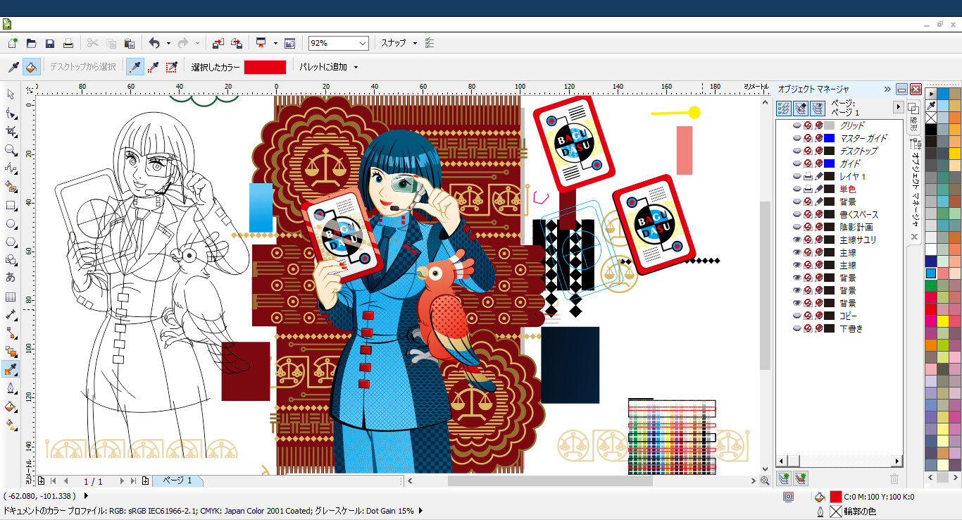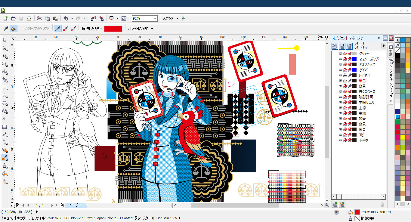【使用画材/ソフト】CorelDRAW X5、Adobe Photoshop Elements 6.0。