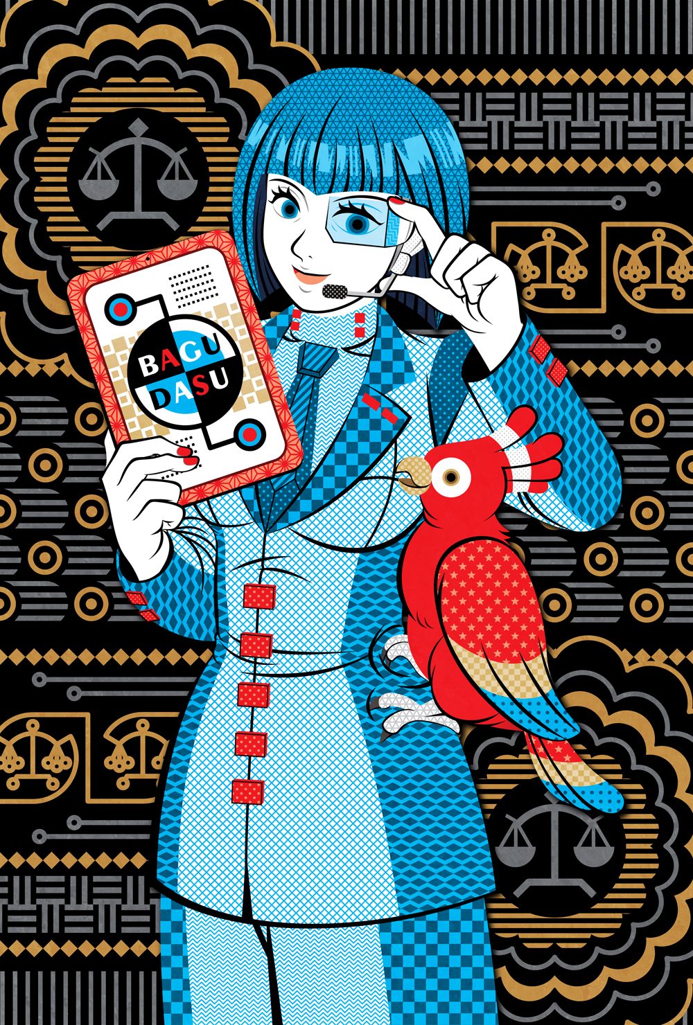 下絵の背景「コンピューター基板」的なイメージですが天秤マーク(逆裁絵にはこれとサユリさんを入れるワイ決まり)入れて上手くデザイン出来るか…。※変更の可能性もあり