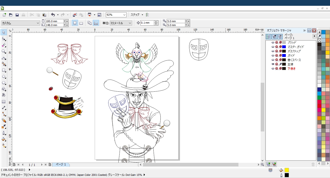 【使用画材/ソフト】CorelDRAW X5、Adobe Photoshop Elements 6.0。