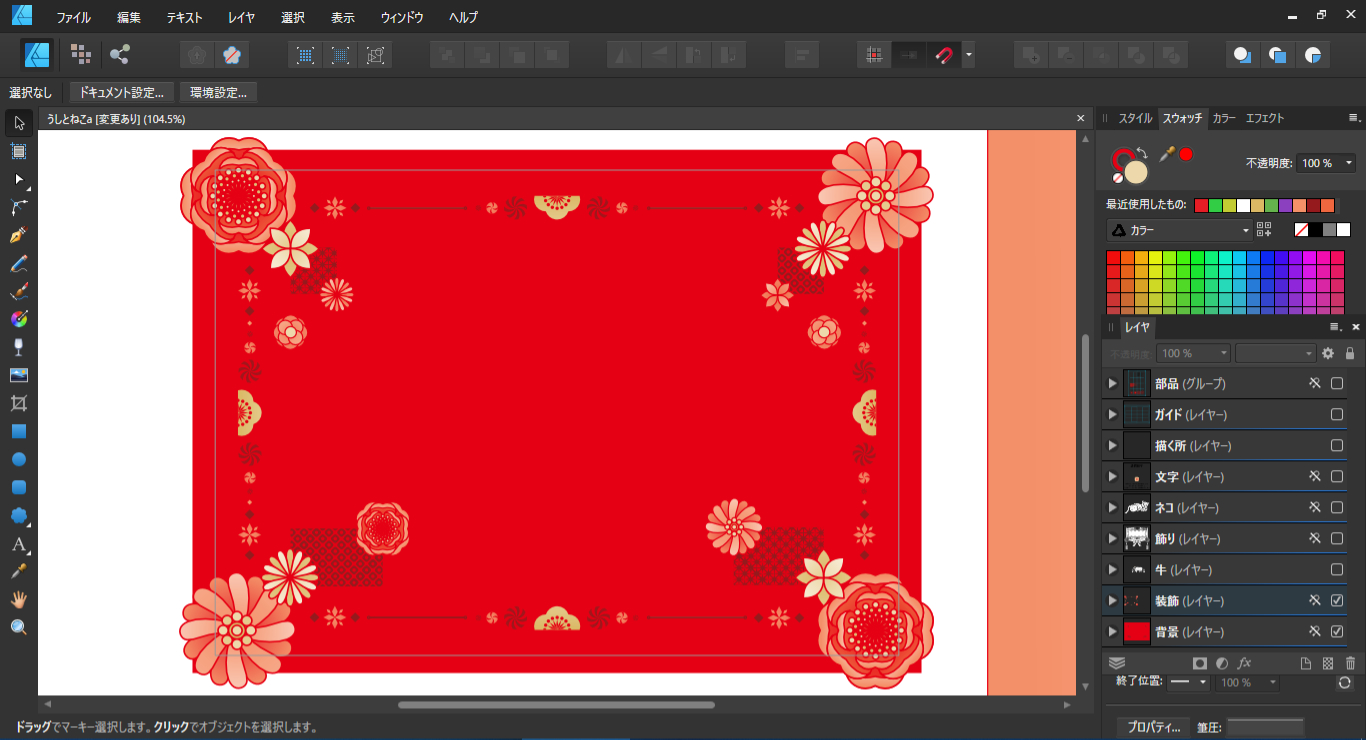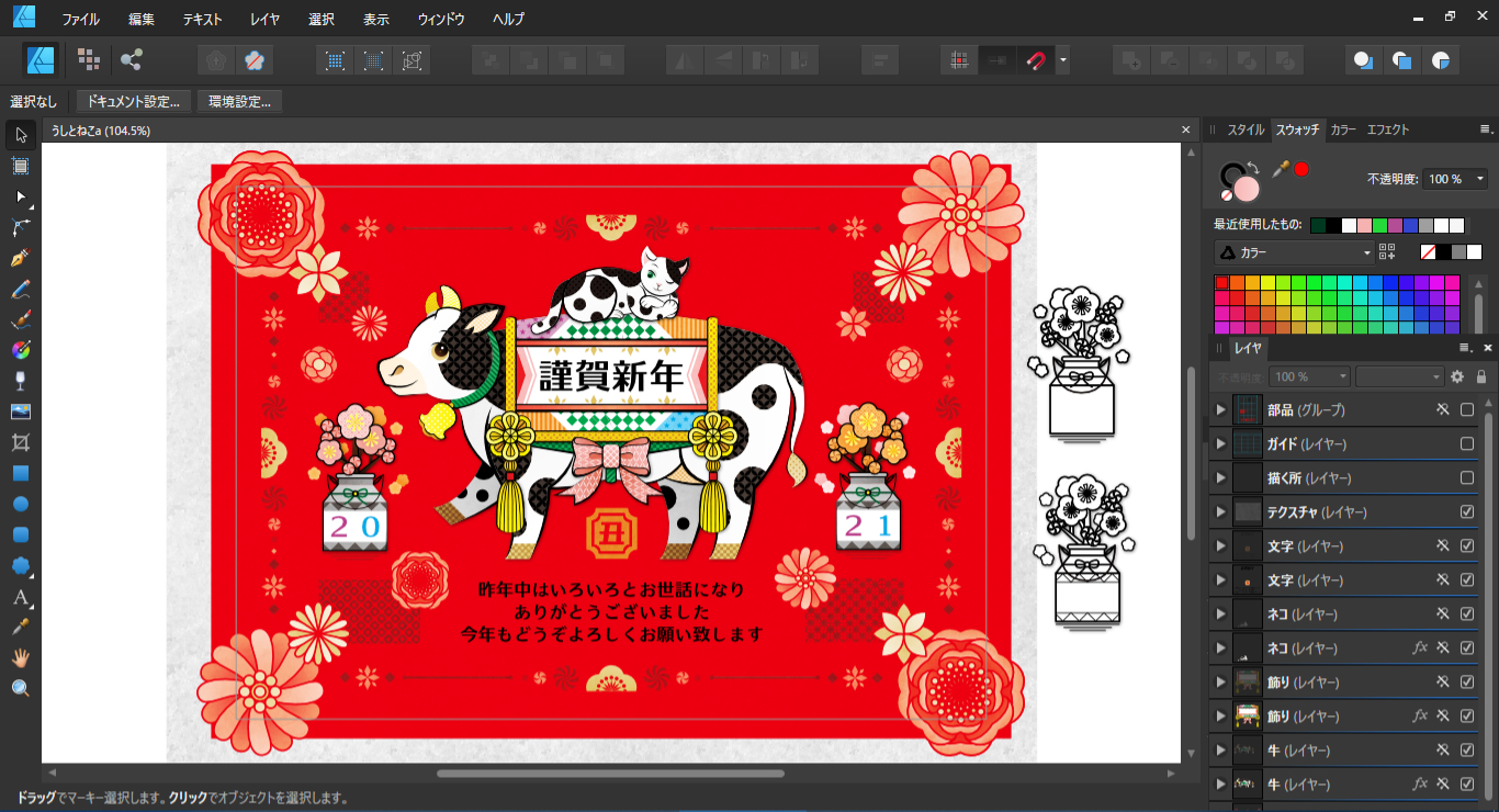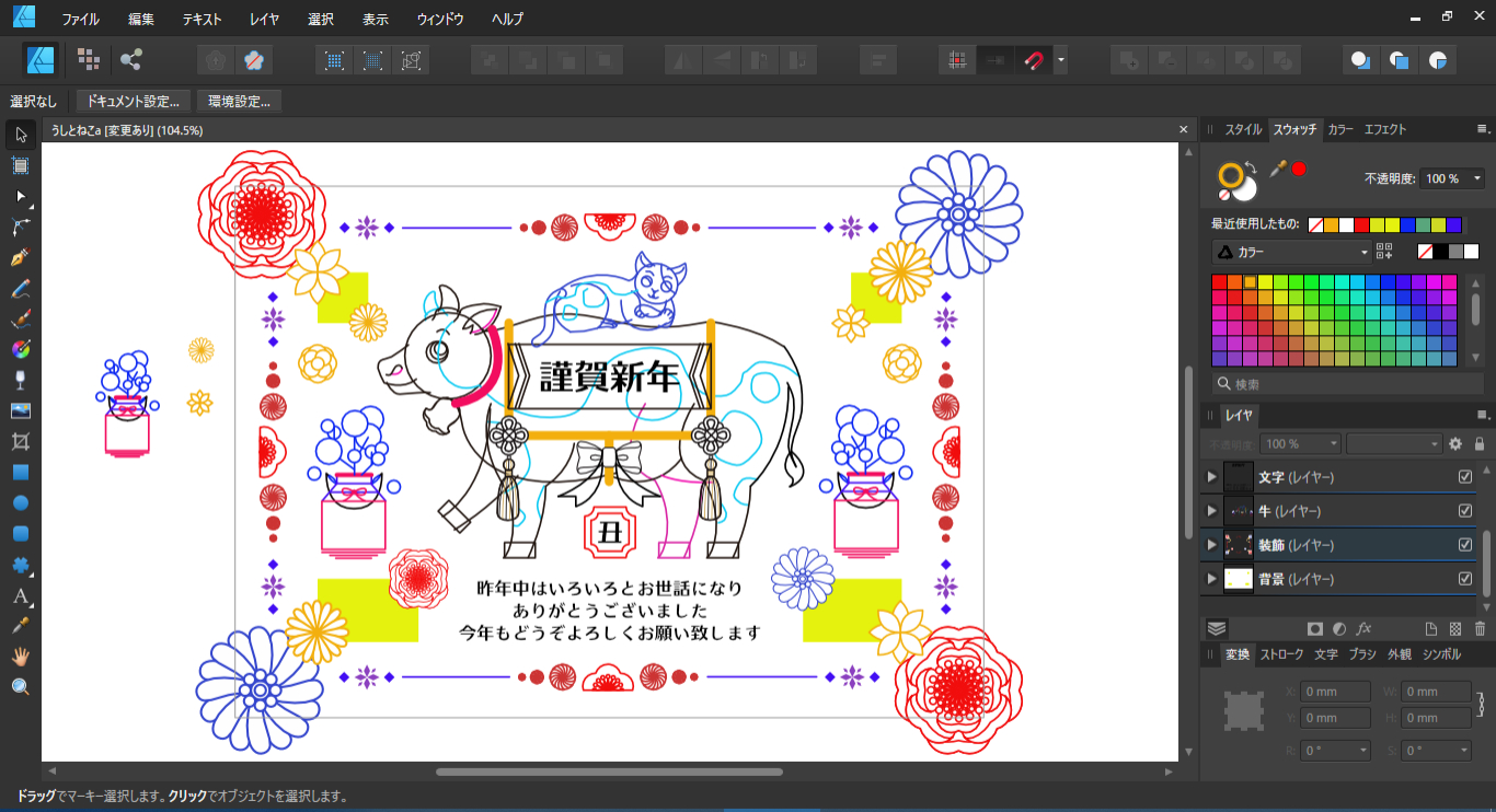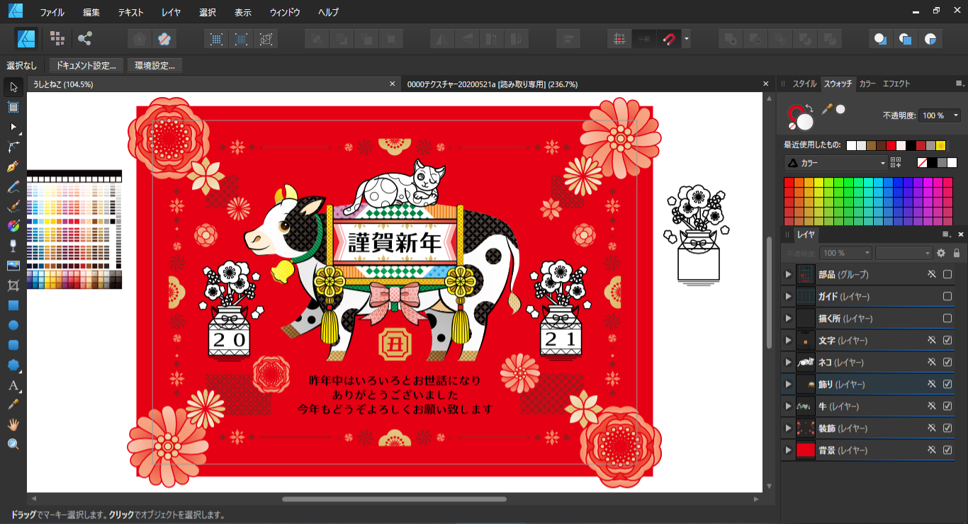 毎年作っている無料年賀状の制作過程を保存したので投稿。