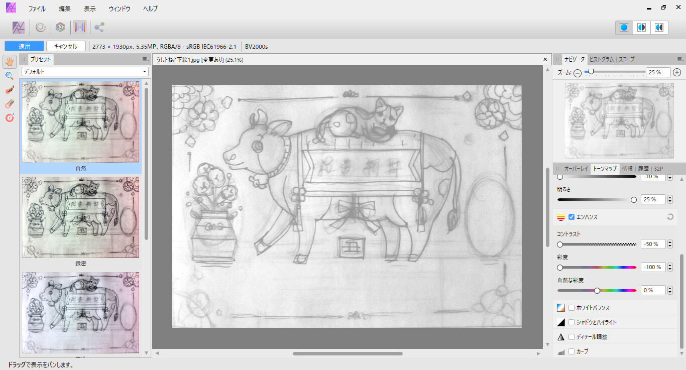 下絵の調整今まで写真ペルソナの調整メニューでやってたけどトーンマッピングペルソナの方が自分にはやりやすい気がした…好みの問題?