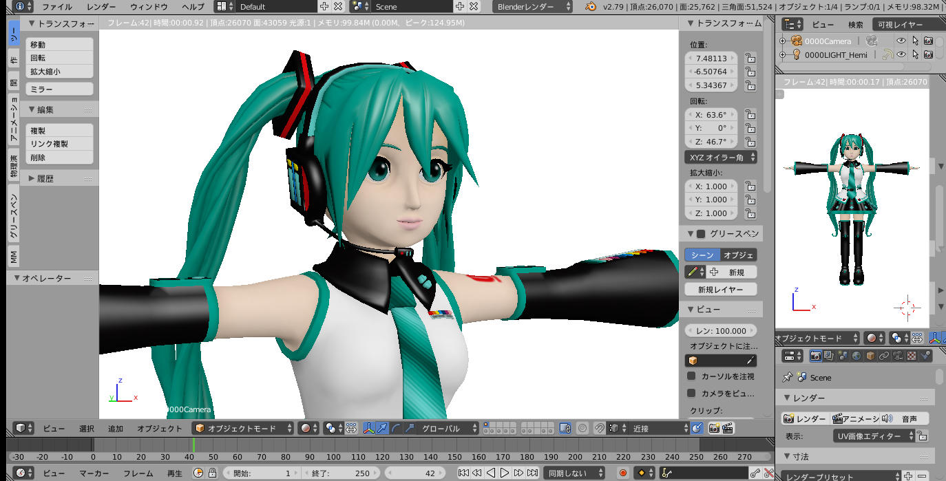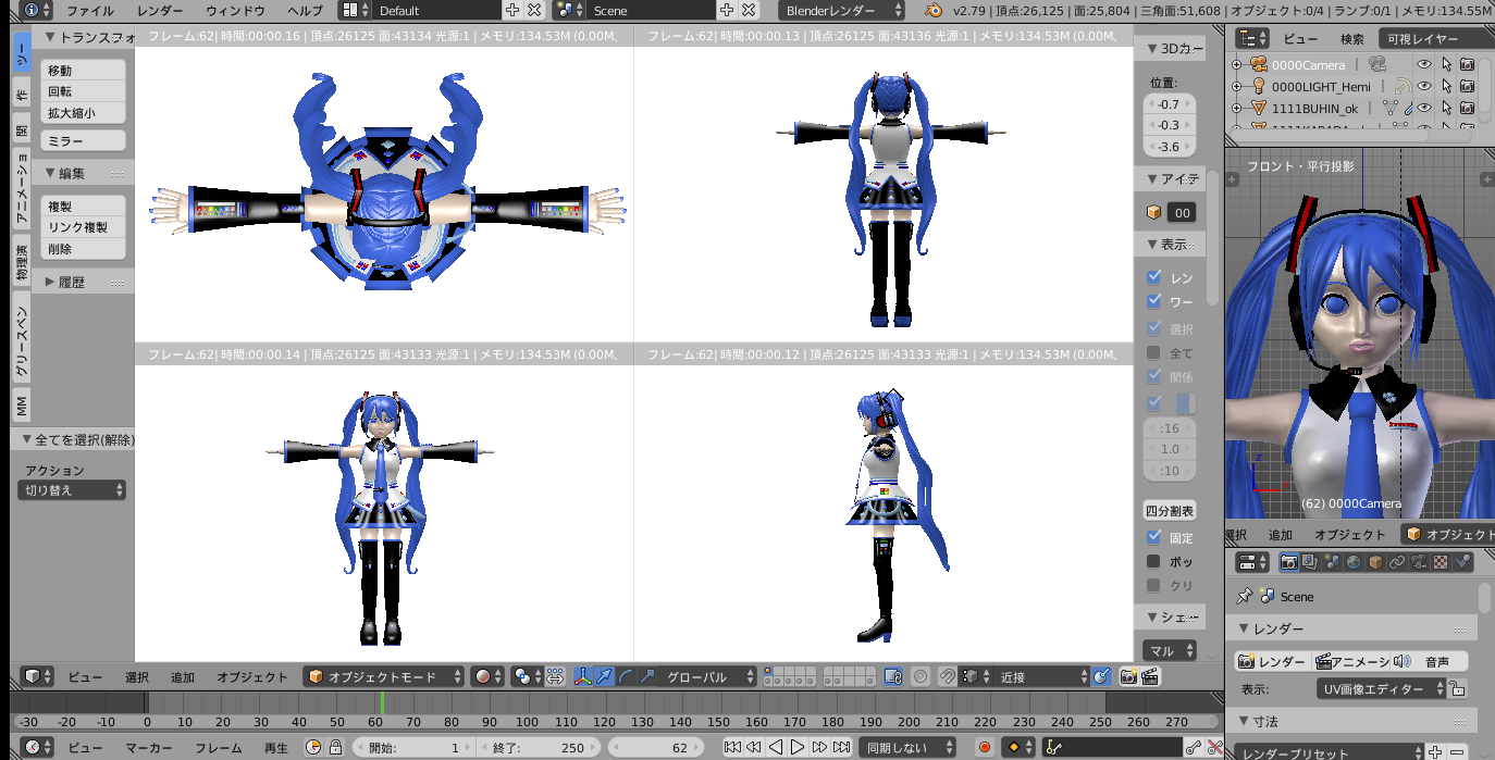3DCG(Blender2.79)学びの記録/ボーカロイド 初音ミク・VOCALOID HATSUNE MIKU(二次創作)