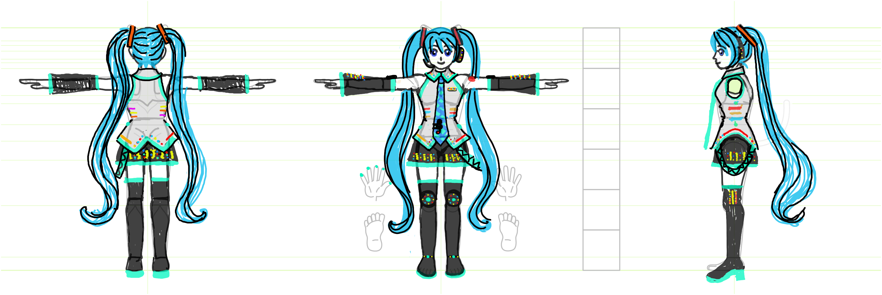 ◆無料3DCGモデリング用三面図(オリジナル&二次創作)