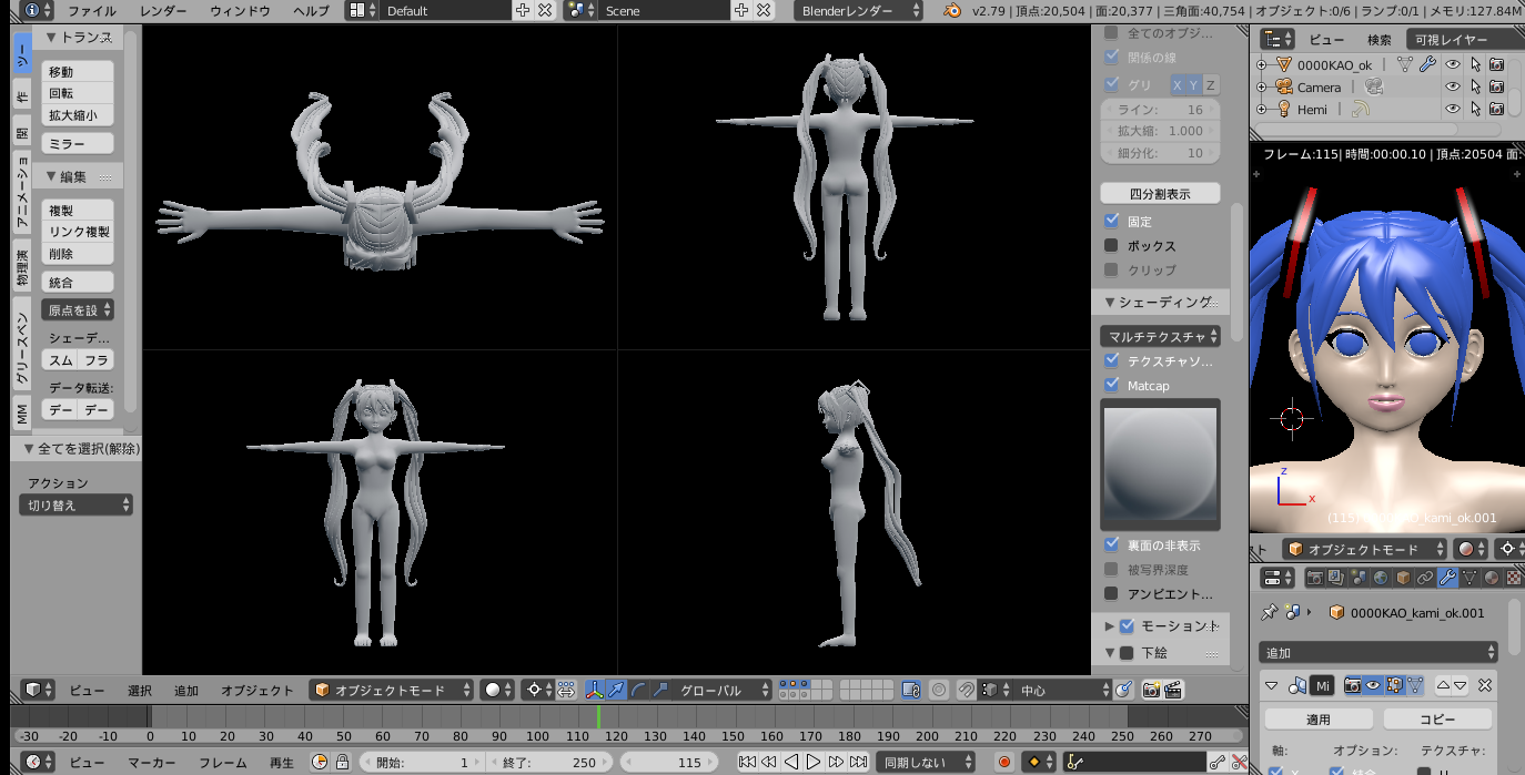 これから細かくウェイト調整して表情シェイプキー入力して地獄の物理演算。