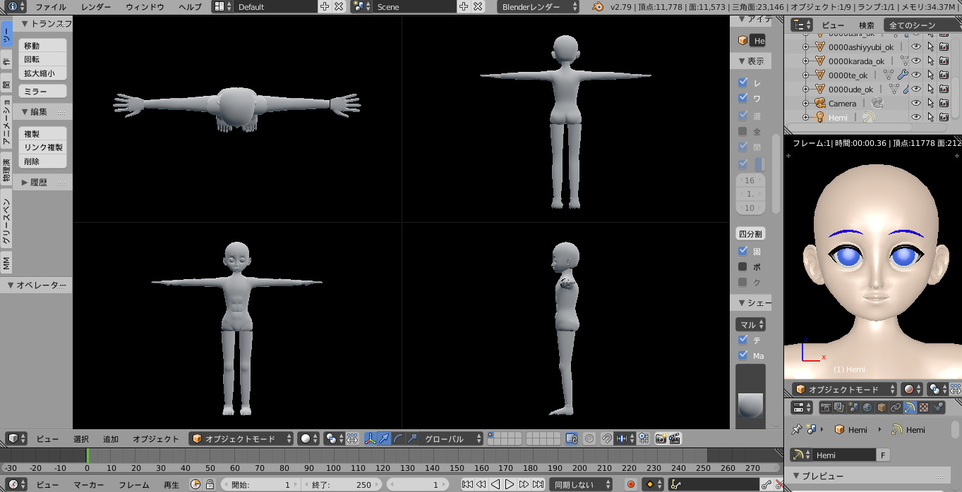 この素体はこのまま今後二次元系女子キャラに流用出来そうですがこれでもう▲3万ポリゴン近いのヤバいかもしれない。※細分割曲面オフだと▲6500弱