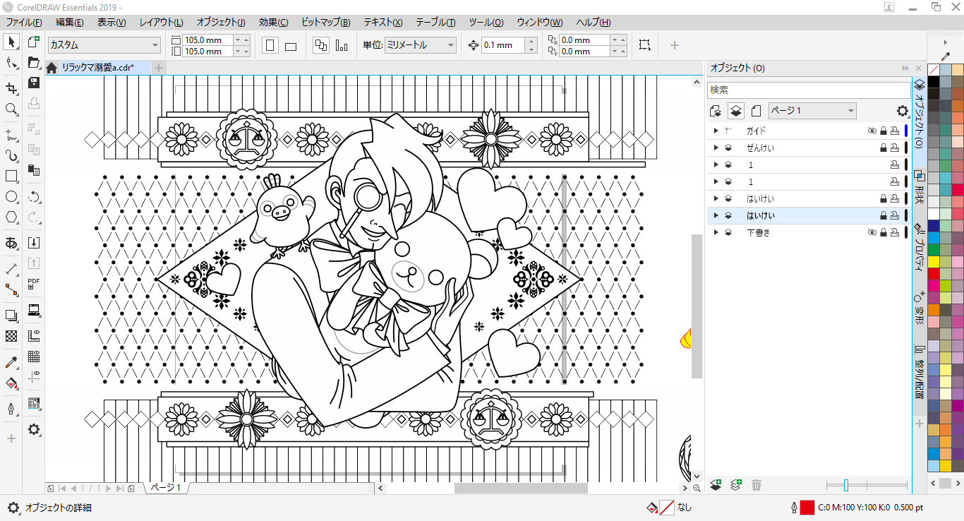 【タグ】逆転裁判 星威岳哀牙 サユリさん リラックマ キイロイトリ 溺愛 塗り絵用線画 CorelDRAW ベクターイラスト AffinityPhoto