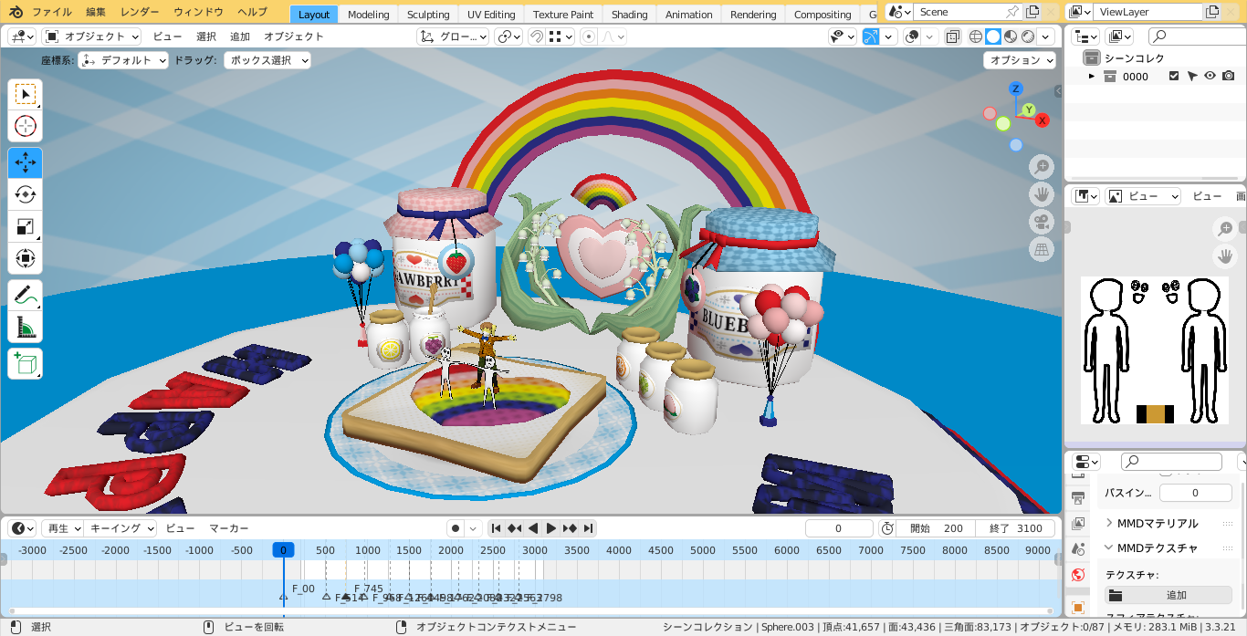 【途中テスト/背景ステージ追加】ハッピー・ジャムジャムをリチャード&カミイチ(しまじろうのわお!)が踊ってみた!※二次創作【Blender 3.6】