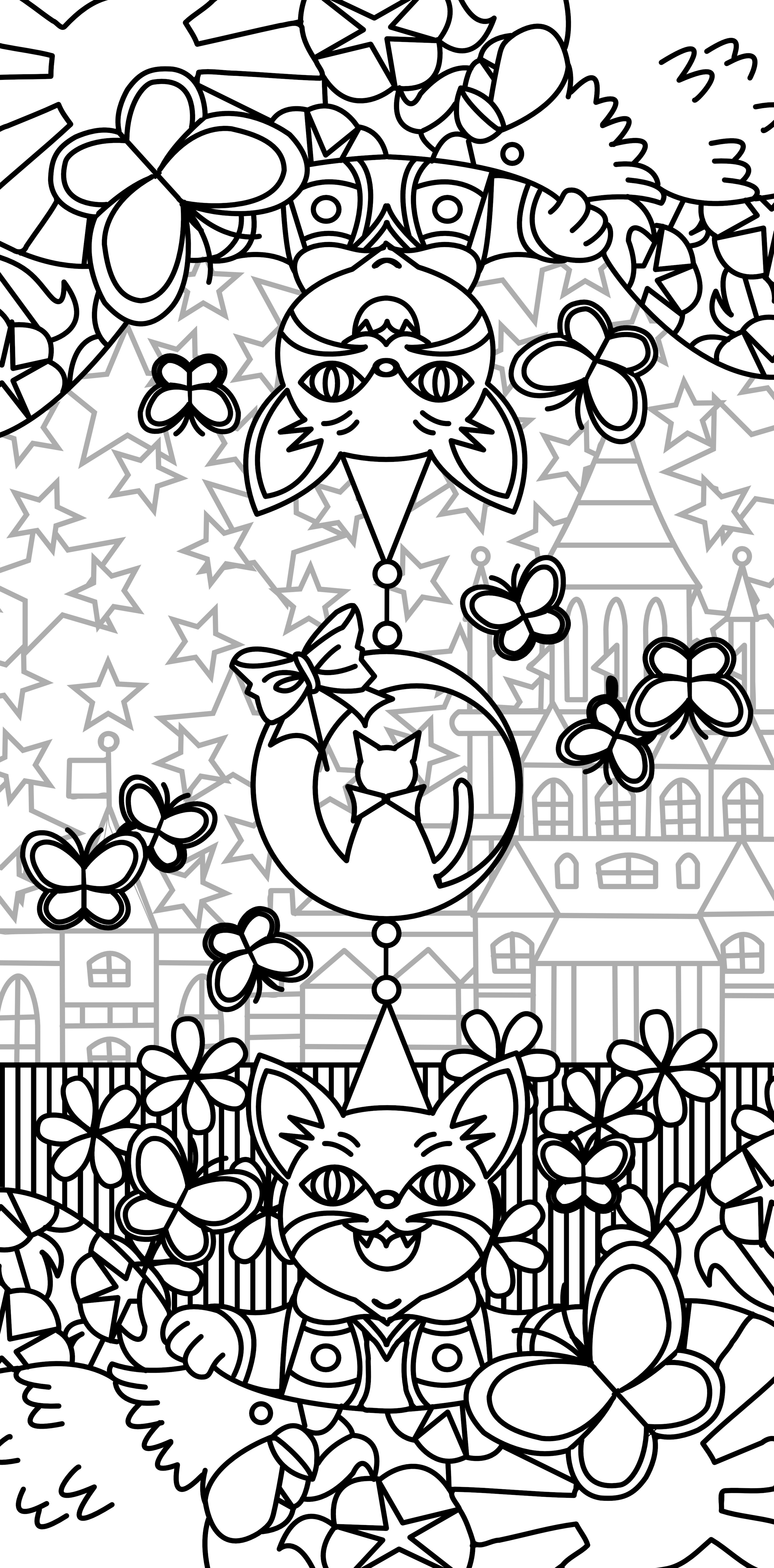 カラーパレット・パターン配色練習ログ(オリジナル・二次創作)/ベクターイラスト練習(技法画風研究) セーラームーンな猫屋敷ユキ&ルナ(わんだふるぷりきゅあ!×美少女戦士セーラームーン)※二次創作/Affinity Designer for PC 2 使用