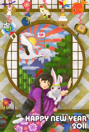 カラフル和風(2011年卯年年賀状用フリー素材)
