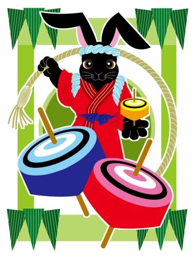 謹賀新年独楽回し(2011年年賀状用フリー素材)