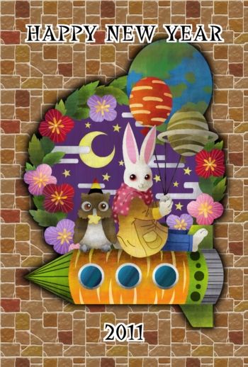 一緒に宇宙へ行きたいね(2011年卯年年賀状用フリー素材)