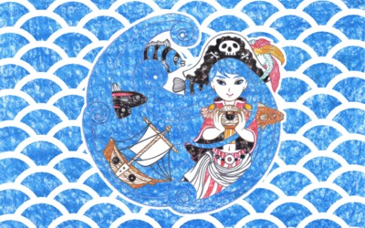 ↑背景にも「クレヨン素材」を貼り付け、1枚目の画像と合成。